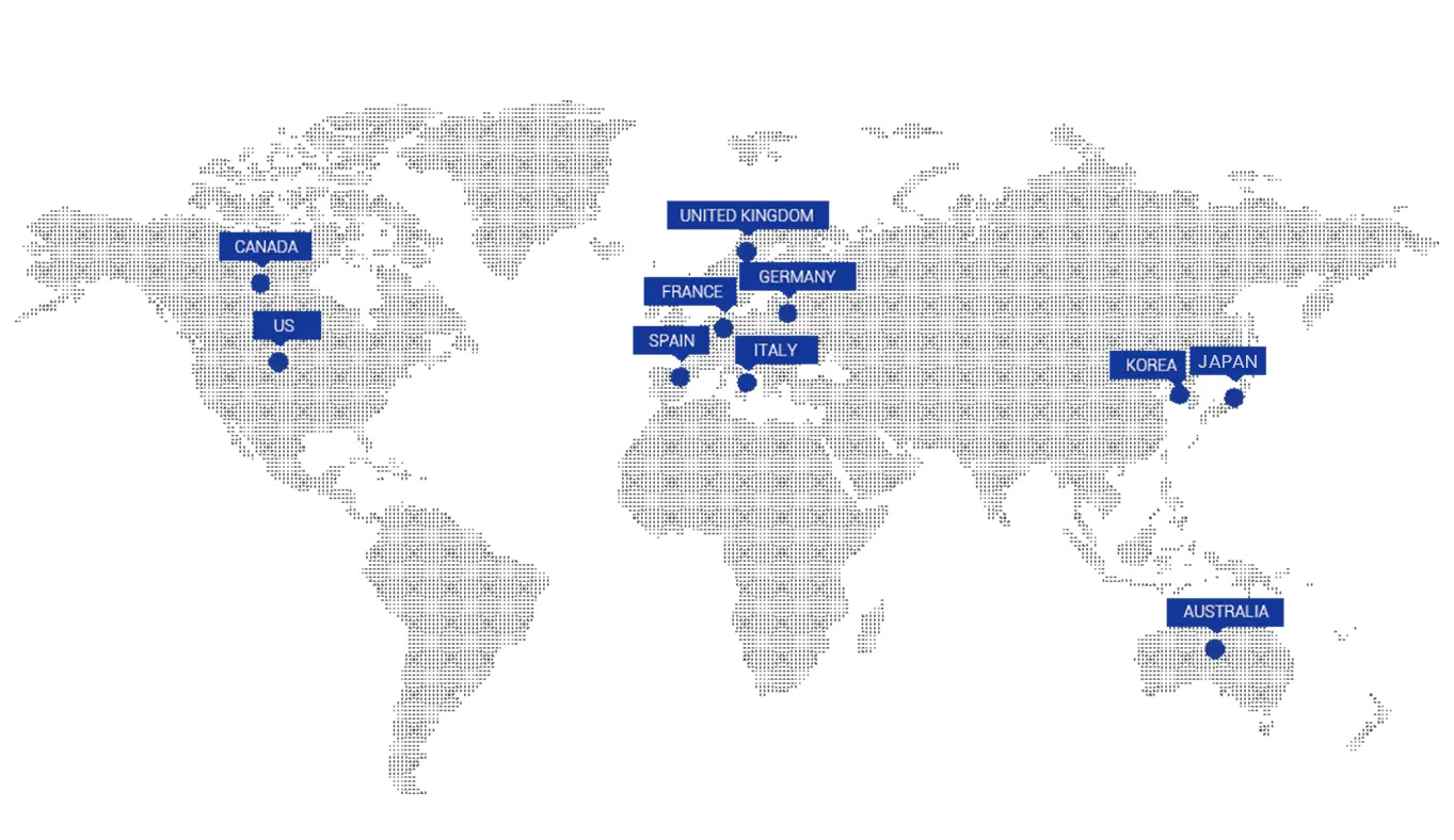 Alemanha, Japão, Espanha, Itália, Grã-Bretanha, Coreia do Sul, Austrália e Canadá.